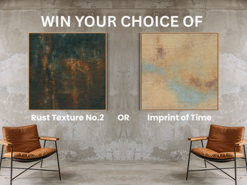 The winner may choose between a 90 x 90cm Framed Gliclee Canvas Print of Rust Texture No. 2 or Imprint of Time.